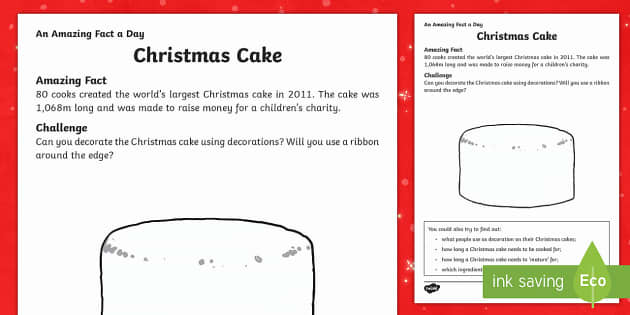 Christmas Cake Activity Sheets - Amazing Fact Of The Day